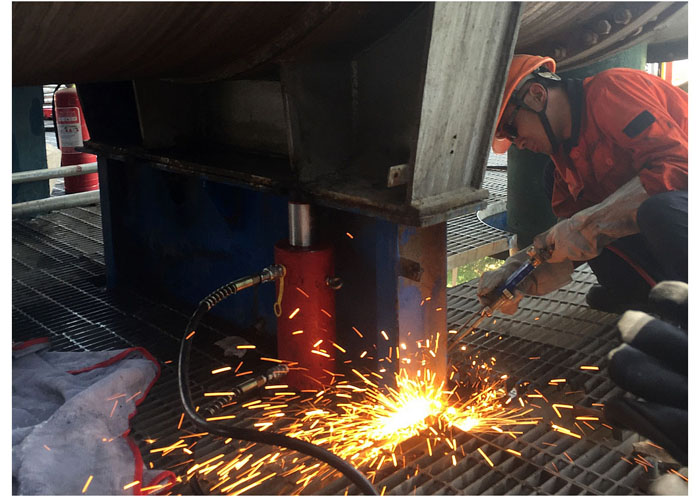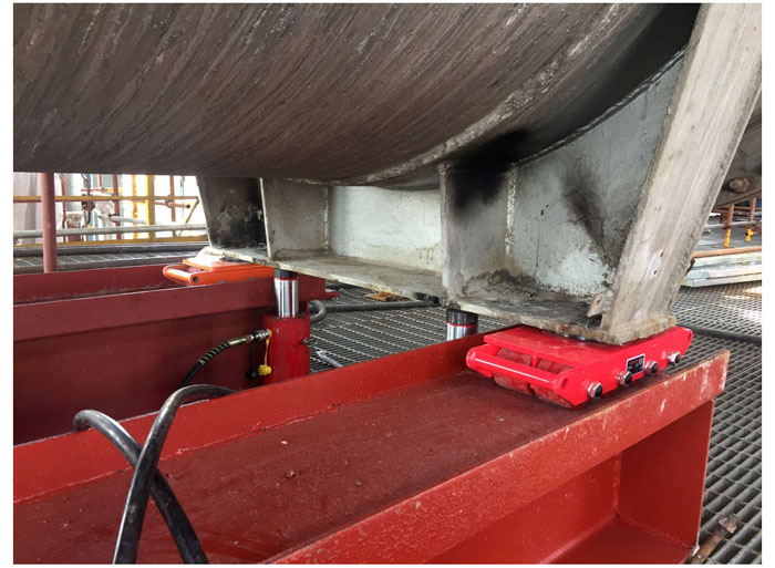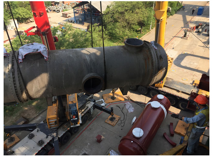 四年一次的太阳城石化大修改造检修现场如火如荼。塑料厂苯乙烯装置重达46吨的E306换热器设备更新,要求将原E-306换热器设备从三层平台内拆除导出,再将新设备更换到位,这是该装置建成以来第一次整体更换次换热器。由于吊装作业空间狭小,上端没有承重梁,采用常规的6台10吨倒链、滚杠移位,上部加设承重梁,施工时间长,作业风险大。为此,公司起重运输中心提前设计制作了11米的轨道专用工装,专门购置了4台12吨坦克运输车和4个油压千斤顶等专业工具,利用新技术打好突击战。在一下午的突击中,起重三班青年员工张士军带领6名“突击队员”密切协作,规范作业,由260吨和160吨两台吊车共同将旧设备顺利“抬至”地面,并将新设备准确“抬进”预设轨道。采用该新技术,不仅节约了1倍作业时间和三分之一的人工,而且整个吊装过程达到了安全受控,受到业主的高度称赞。